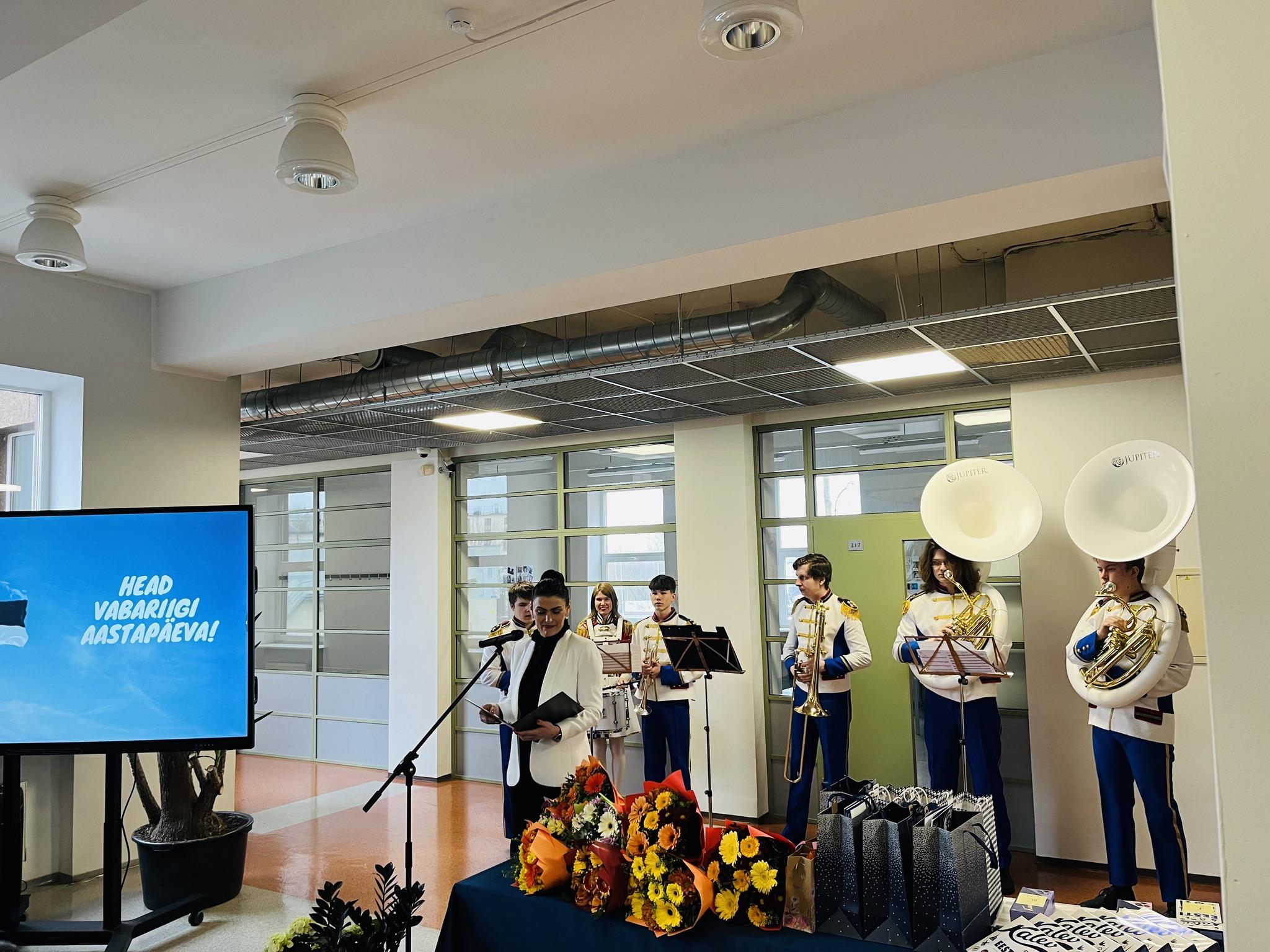 Tallinna Kopli Ametikoolis toimus pidulik aktus, mis oli pühendatud Eesti Vabariigi 106. aastapäevale. Aktus algas Eesti hümni kõlades ja Tallinna Kopli Ametikooli direktori sõnavõtuga. Meie külaliseks oli ka Riigikogu liige Vadim Belobrovtsev. Pidulikku õhkkonda täiendas Tabasalu Brass orkester oma kaunite meloodiatega.